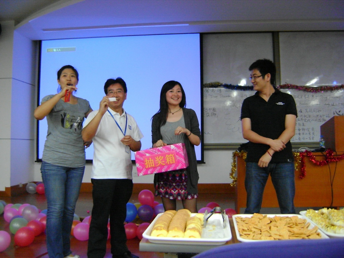 4月27日下午在E栋104成功举办了一场别开生面的“HAPPY HOUR”,此次活动由深圳富津世生物技术有限公司与化学生物与生物技术研究院联合主办。主持人风趣幽默的语言拉开了活动的帷幕,罗明教授和黄湧教授分别致辞。现场设置了“踩气球”、“乱点鸳鸯谱”、“彩球飞跃三重门”等游戏,每个游戏的设计都是融知识性、趣味性于其中,同时还设置了抽奖环节。在整个活动中全场人员热情高涨,将欢乐气氛推向一个又一个高潮,大家的快乐心情释放的淋漓尽致!