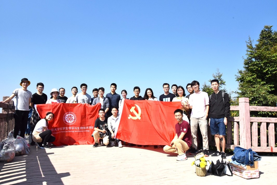 20191110日上午,北京大学深圳研究生院化学生物学与生物技术学院2017级、2018级和2019级硕博党支部联合举办“不忘初心,牢记使命”主题教育、实践、志愿服务活动。本次活动由化学生物学与生物技术学院2017级、2018级和2019级硕博党支部三位党支部书记蔡泳锋、郑行和王哲源共同主持,北京大学南燕鲲鹏协会协办,各党支部成员参加。本次活动以“不忘初心,牢记使命”主题教育实践式学习为主,穿插支部书记讲党课,登山与环保志愿服务相结合,理论联系实践,强化党员心中“守初心、担使命;讲党性、作表率;知规矩、存敬畏”的责任意识,增强各支部凝聚力和战斗力,为社会主义生态文明建设传播正能量。