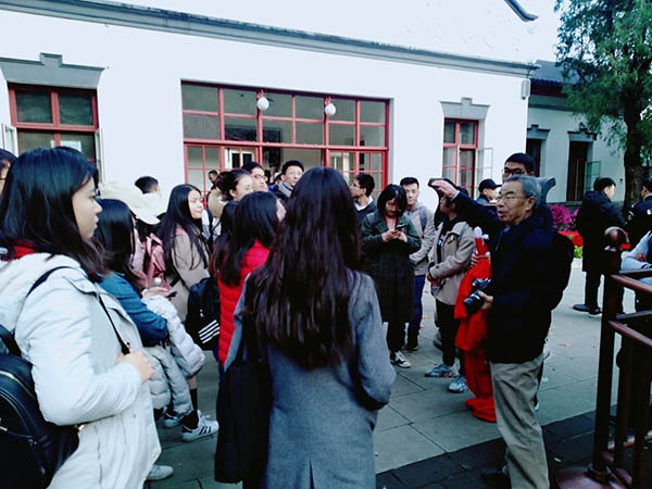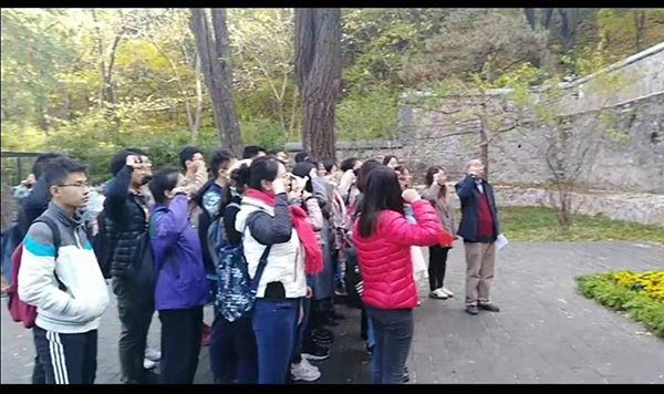 图4 罗老师为同学们讲解香山、双清别墅历史背景