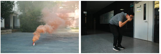 化生学院师生们积极参与到了此次消防演习中来。上午9:00,浓浓的烟雾在F栋楼下升起,由演习工作人员点燃了人工烟雾,并拉响了消防警报,提醒师生们及时撤离。很快,大家便放下手中的工作,采取相应的防护措施,有序地离开院楼。