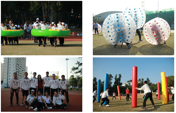 接下来,各项趣味运动比赛项目同时进行:在“八仙过海”比赛中,化生代表队行如闪电,力压群雄,获得第一名;在“跳大绳”和“携手并进”比赛中,化生选手不负众望,完美地发挥出训练水平,获得第二名;在“不倒森林”比赛中,大家与十多根巨型立柱进行了顽强抗争,取得了第五名的成绩。在教工项目“泡泡足球”中,我院教职工紧密配合,力夺第一!