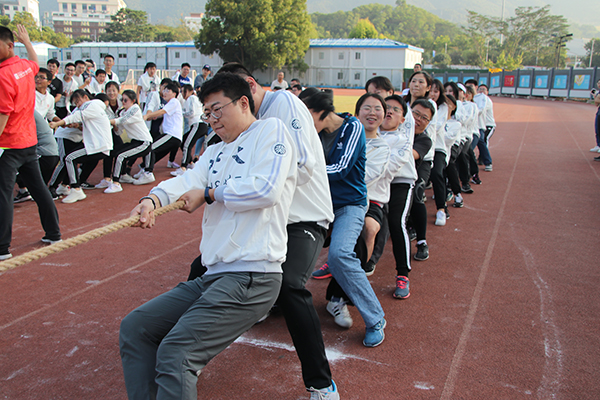 压轴的重头戏是我院的传统优势项目——拔河。拔河,较量的不仅是运动员对地面的摩擦力,更是团结一致的向心力和凝聚力。比赛时,化生学院几乎全员出动,除了参加比赛的20名运动员,其余的师生都在场边为他们加油助威,喊声震天的拉拉队是拔河运动员的一针强心剂,化生代表队有如神助,一举夺得拔河比赛的冠军。