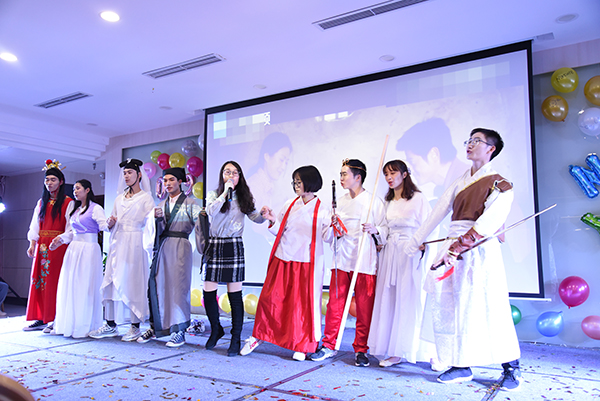 晚会伊始,北京大学深圳研究生院院长吴云东院士与普林斯顿大学技术转移办公室主任John Ritter给全体师生送上了新年祝福。本次晚会由我院2018级研究生侯运楠和张鑫洋主持。随着音乐的响起,2017级学生为大家带来了热情洋溢的开场舞《Good time》。接着各个课题组的师生更是为大家带来了他们精心准备的节目:诗朗诵《花生的故事》将化学知识与菜谱结合;现场小提琴伴奏的《天空之城》;high翻天的舞蹈《失恋阵联盟》;自编自导自演小品《博士那点儿事儿》;改编自《死了都要爱》的《死了都要改》歌曲唱出了所有研究生的心声;经典歌曲串烧《水手》;钢琴伴奏悦耳动听的合唱《雪绒花》;幽默风趣的小品《超级士兵》;赵亚波老师深情献唱《大鱼》,台下同学纷纷打开手机灯光伴奏更是将整场晚会推向了高潮。之后有酷炫的荧光舞表演,令全场观众大开眼界;后又有以至尊宝为故事主线的经典古装音乐系列情景剧《一生所爱》(出自大话西游),《天下无双》(出自神雕侠侣),《千年等一回》(出自新白娘子传奇),《木石情缘》(出自87版红楼梦)令现场观众共情感爆棚;最后以合唱歌曲《和你一样》让晚会进入尾声。