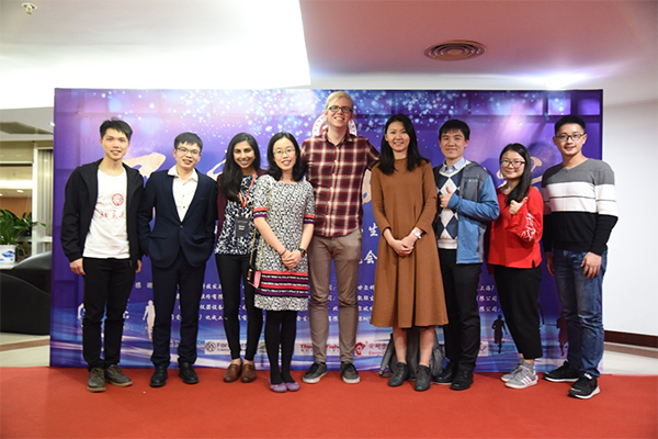 晚会开始前我院学生与普林斯顿大学学生在海报前合影