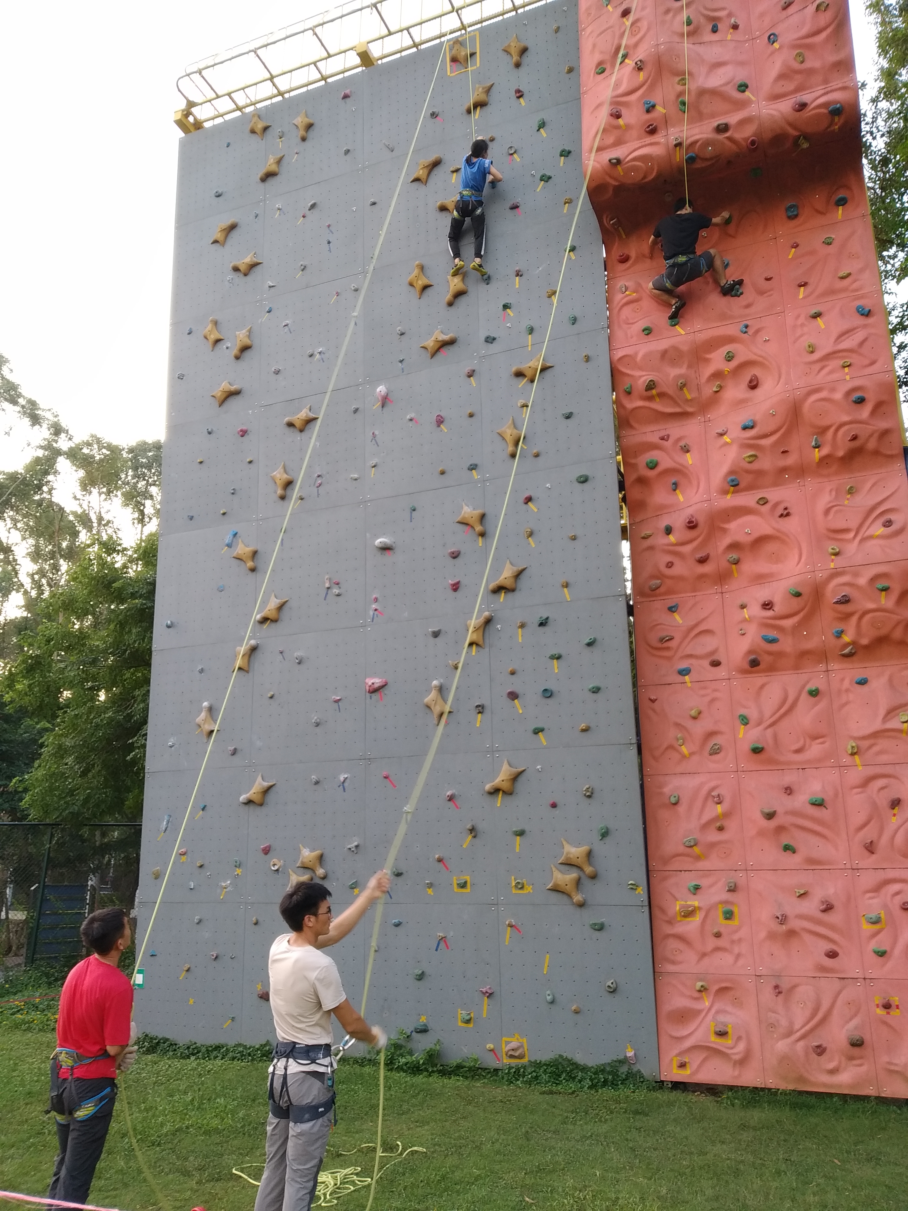 攀岩赛线路,左一为女子线路,右边为男子线路