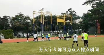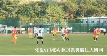 第二场比赛也是小组的关键战役,面对老对手汇丰普硕,球队迎来了中场大脑彭涛老师的回归,新人陈思晋师弟则顶替意外受伤的门将王鸿凯首发。在彭涛老师的中场调度下,球队一改第一场比赛进攻端的颓势,进攻思路清晰有效,频频制造杀机,很快,邱晨在门前回挑,孙天宇和陈可为双人抢点破门取得领先。随后汇丰也发起了多次反击,并获得一粒点球,临危受命的门将陈思晋力挽狂澜,做出了关键扑救。此后化生稳住阵脚,完全控制了中场后,边后卫李勇和唐松涛,如同梅西和内马尔附身,开始频频从边路突破过人,两翼齐飞的化生边卫们使得汇丰的防守队员疲于奔命,很快露出破绽,身着阿根廷10号球衣的彭涛老师敏锐地抓住机会,一脚里克尔梅式的直塞撕开了对手防线,前锋孙天宇心领神会,接球后轻松推射入网,这位曾经的化生锋霸,在工作两年后以教职工的身份重返校园,也重新披上化生学院的9号球衣,那追风的背影依旧是少年模样。2比0的比分也保持了比赛最后。此役过后,化生提前一轮确保小组第一出线。
