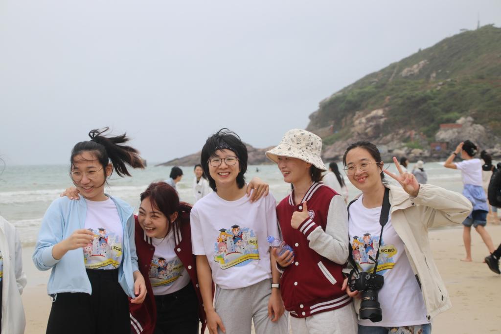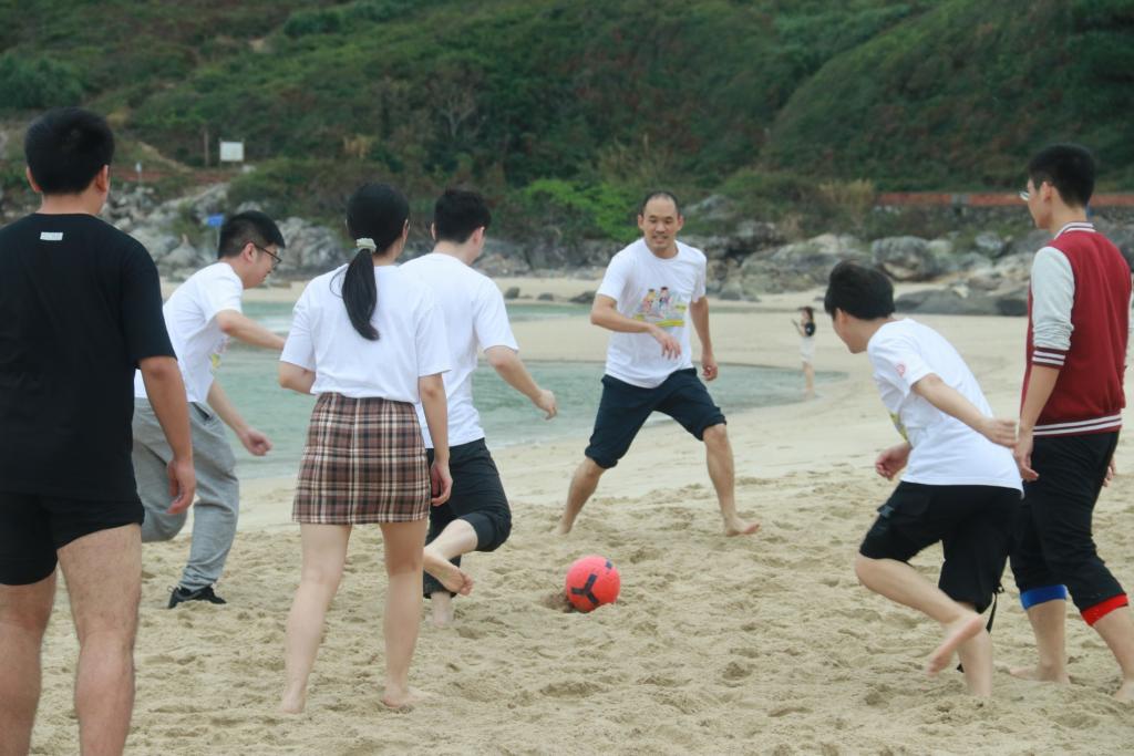 经过短暂休憩,全体师生前往东涌海滩开展集体素质拓展活动,化生学院研究生会和化生学院2020级学生骨干精心组织了一系列集体协作游戏和互动打卡活动,同学们组队协作,共同完成团队协作任务。“蒙眼沙包”游戏使同学们体会到了改革开放时期“摸着石头过河”的艰难和不易,对“开拓创新”深圳精神产生了更为深刻的理解。独具深圳特色词汇的“你画我猜”游戏,让同学们对“开放包容”的深圳精神产生了更为全面的理解。而在“跳房子”这一游戏的过程中,同学们需在规则内尽可能高效地完成游戏,因而增加了大家对“务实尚法”的深圳精神的认识。在“两人三足”中,随着同学们一次次刷新最好成绩,大家也对“追求卓越”的深圳精神有了进一步地理解。