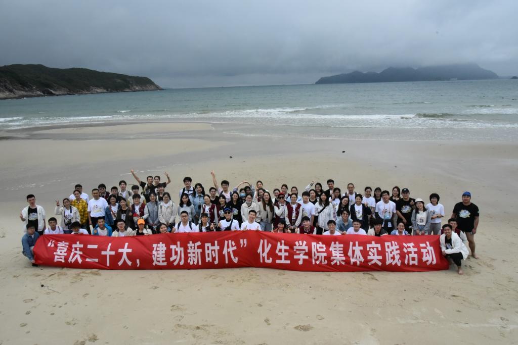 11月23日上午9点,在化生学院翟宏斌教授、化生学院教工党支部书记赵亚波、深研院团委书记左腾、化生学院学工老师鹿亚男共同带领下,化生学院70余名同学前往华大万物实践基地与东涌沙滩开展理论学习、科学调研与集体实践活动。