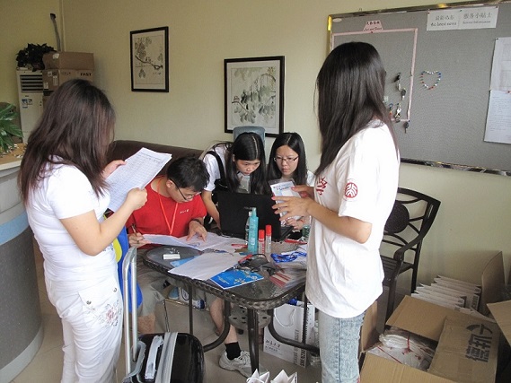 On 10th July,In order to meet the student summer camp successfully in 11th July,the teachers and volunteers greet the 84 new studens in a campus service center. They helped them get into the d...
