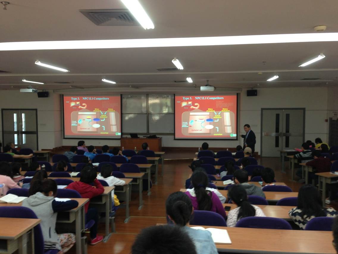 Nov. 21th, 2014 (10:00-12:00, E-104)---Prof. Zhen-Yu Chen (CUHK)& Prof. Lin Yang (Henan Normal Univ.) paid a visit to our school, and gave an academic report. Prof. Lin Yang made entitled "without extremely mechanism nano structure biomimetic compose\mechanism and nature" academic report. Prof. Zhen-Yu Chen made a presentation entitled "Cholesterol, Heart Disease and Functional Foods" academic report. The academic report vivid, attracted great attention in the field of teachers and students, and carry on the warm discussion.