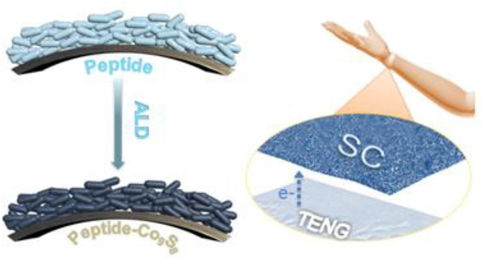 图二、多肽-Co9S8杂化超级电容器与TENG耦合器件示意图