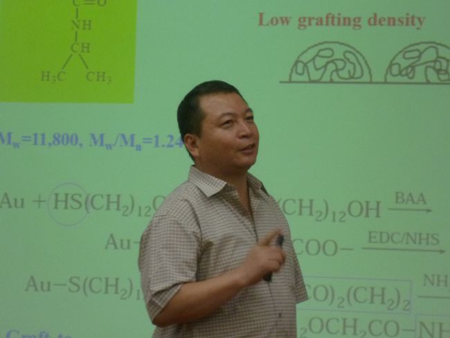 2012年10月16日,华南理工大学材料科学与工程学院张广照教授应我院李子刚老师的邀请来我院进行访问交流。下午两点,张广照教授在北大E104举行了学术报告会,报告会由李子刚老师主持。在李子刚老师对张光照教授表示欢迎并进行简短介绍后,张广照教授作了题为“石英微天平技术原理及应用”的学术报告。报告着重讲解了石英微天平的基本原理及张广照教授回国后利用石英微天平研究高分子的相关工作。此次讲座开拓了同学们的视野,了解到这种灵敏的表征方法,该技术不仅可应用于高分子表面研究,亦可应用于化学生物学等交叉学科的研究中。